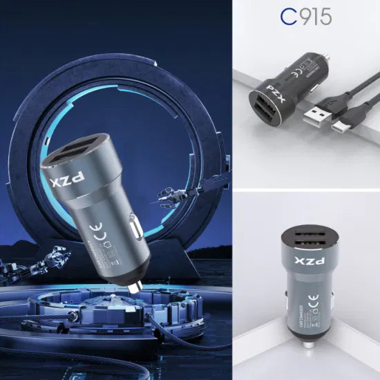 Pzx modèle C915 Chargeur de voiture USB double métal 2.4A